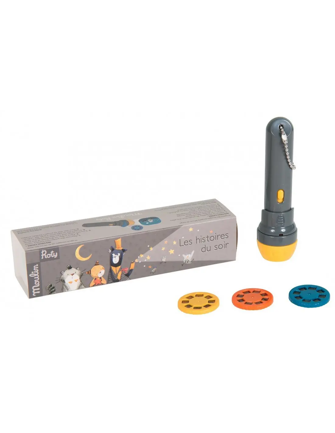 Découvrez la boite grise de 3 disques pour lampe à histoires de la collection il était une fois de Moulin Roty, 3 histoires à insérer dans n’importe quelle lampe à histoire pour projeter 3 nouvelles histoires.