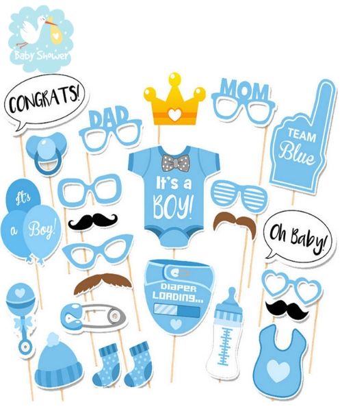 Kit photobooth garçons, 25 pièces sur le thème bĂ©bĂ© Lot d’accessoires pour animer votre sĂ©ance photos. IdĂ©al pour le jeu du photobooth baby shower. Amusez vos amis et votre famille avec cette sĂ©rie de 25 accessoires photobooth baby shower garçon (lunettes, ballons, biberon, couche…). Simples Ă utiliser pour animer des jeux baby shower: choisissez vos accessoires et placez-vous devant l’objectif! RĂ©alisez des photos de groupes ou individuels avec vos amis et vos proches: des images Ă ajouter Ă l’album de bĂ©bĂ©. Photos souvenirs et bonne humeur garanties