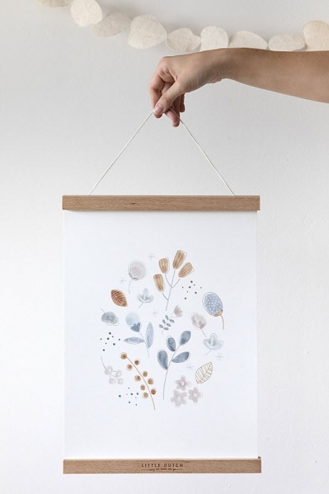 Égayez une chambre de bébé ou d’enfant en accrochant un poster Little Dutch unique au mur. Little Dutch a élaboré différents dessins en format A3 et propose donc une illustration pour tout type de chambre. De plus, tous les posters sont imprimés en deux faces, vous pouvez donc aisément changer d’image. Combinez le poster avec nos baguettes de suspension en bois pour posters en vente sur ce site ref: 8010.