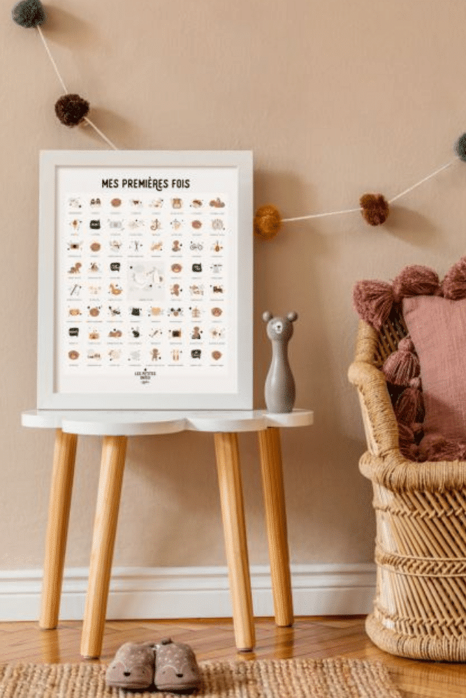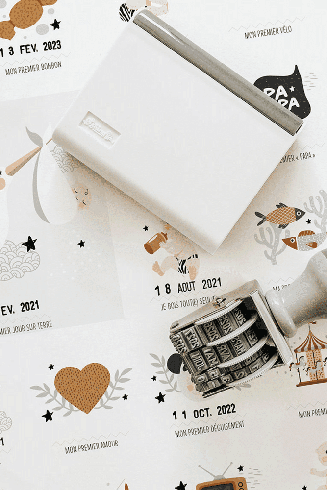 Souvenez-vous des petits moments qui comptent avec cette affiche des premières fois de bébé et son tampon dateur. L’univers graphique doux, poétique et chaleureux convient autant aux chambres des garçons qu’à celles de petites filles.