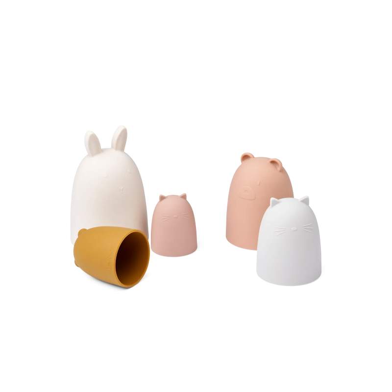 Ces adorables petits animaux en silicone souple peuvent être à la fois empilés ou sont parfaits pour jouer à cache cache. On peut donc les superposer ou les emboîter, grâce à ses actions votre enfant pourra développer sa motricité fine, sa dextérité et son imagination.