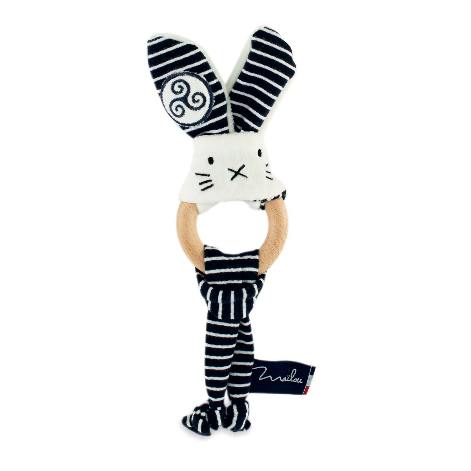 Anneau Dentition Chien Iroise, un doudou breton tendre et pratique. Fait main en Bretagne, il accompagne bébé avec douceur dès les premières dents.