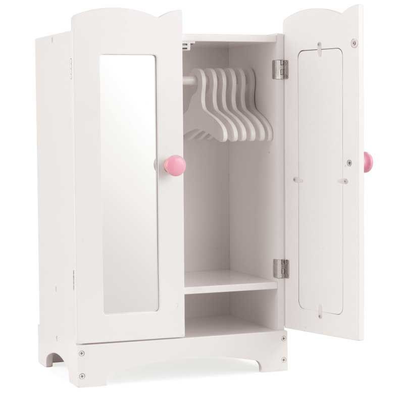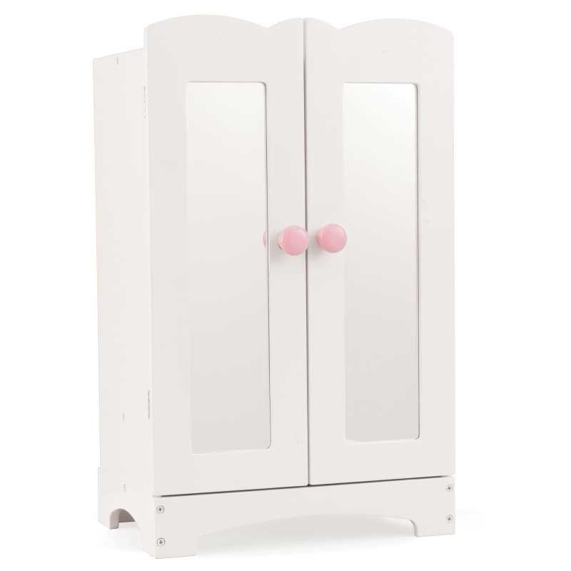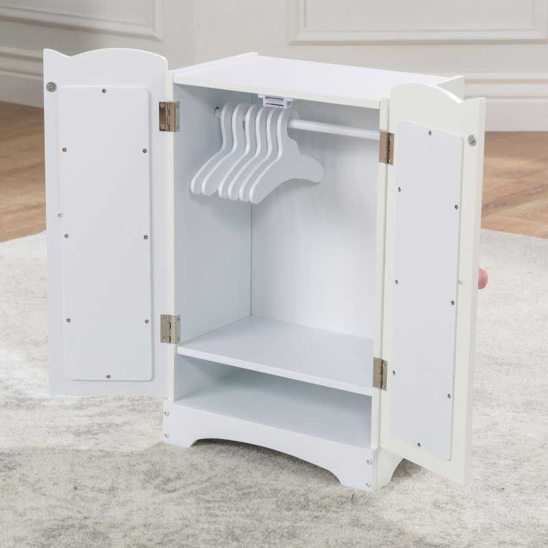 L’Armoire de poupée Lil’ Doll de KidKraft est une manière amusante et élégante pour les enfants de bien ranger leurs vêtements de poupées. D’une taille parfaite pour les poupées de 45 cm, avec des bords classiques festonnés et six cintres en bois, c’est un atout de charme pour la chambre d’une poupée. Les deux miroirs sont en plastique solide et sûr et la structure en bois permettra à cette armoire de durer de nombreuses années.