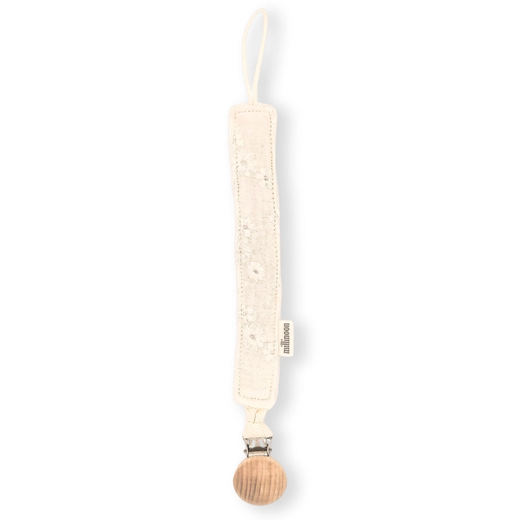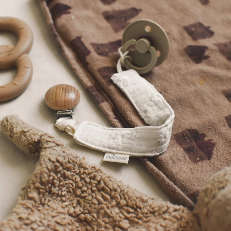 Attache tétine en gaze de coton brodé