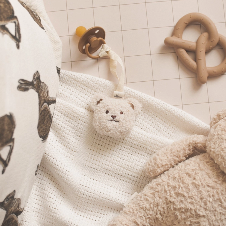 Attache tétine clip ourson beige