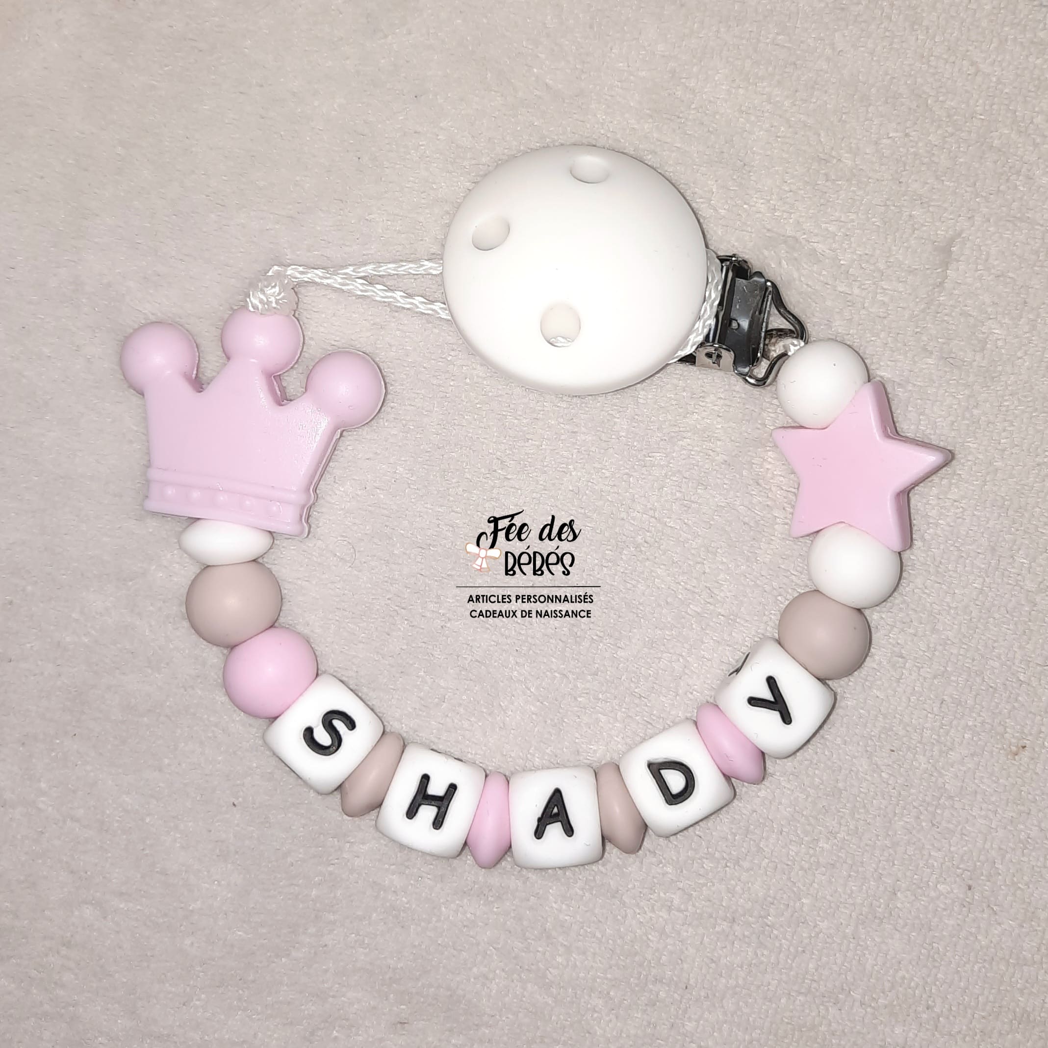 Attache tétine personnalisée en silicone avec couronne et étoile