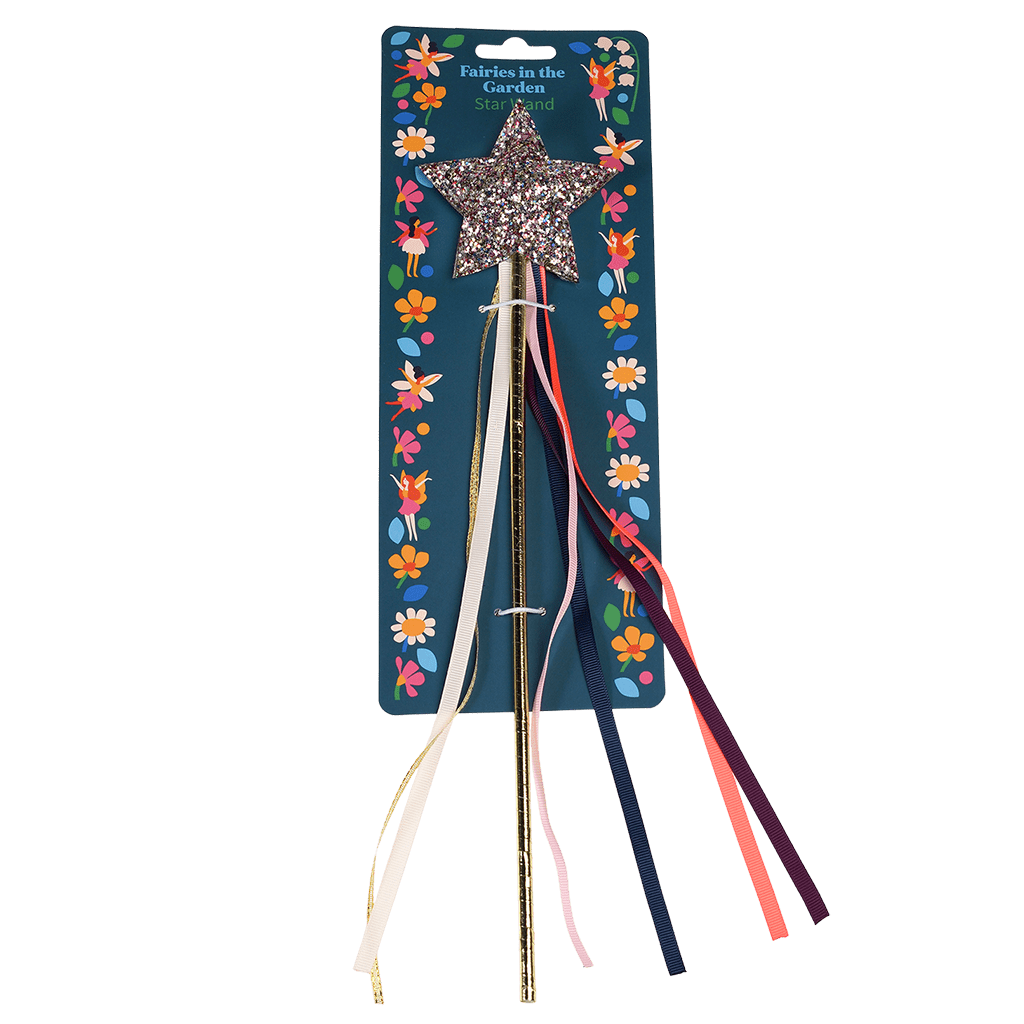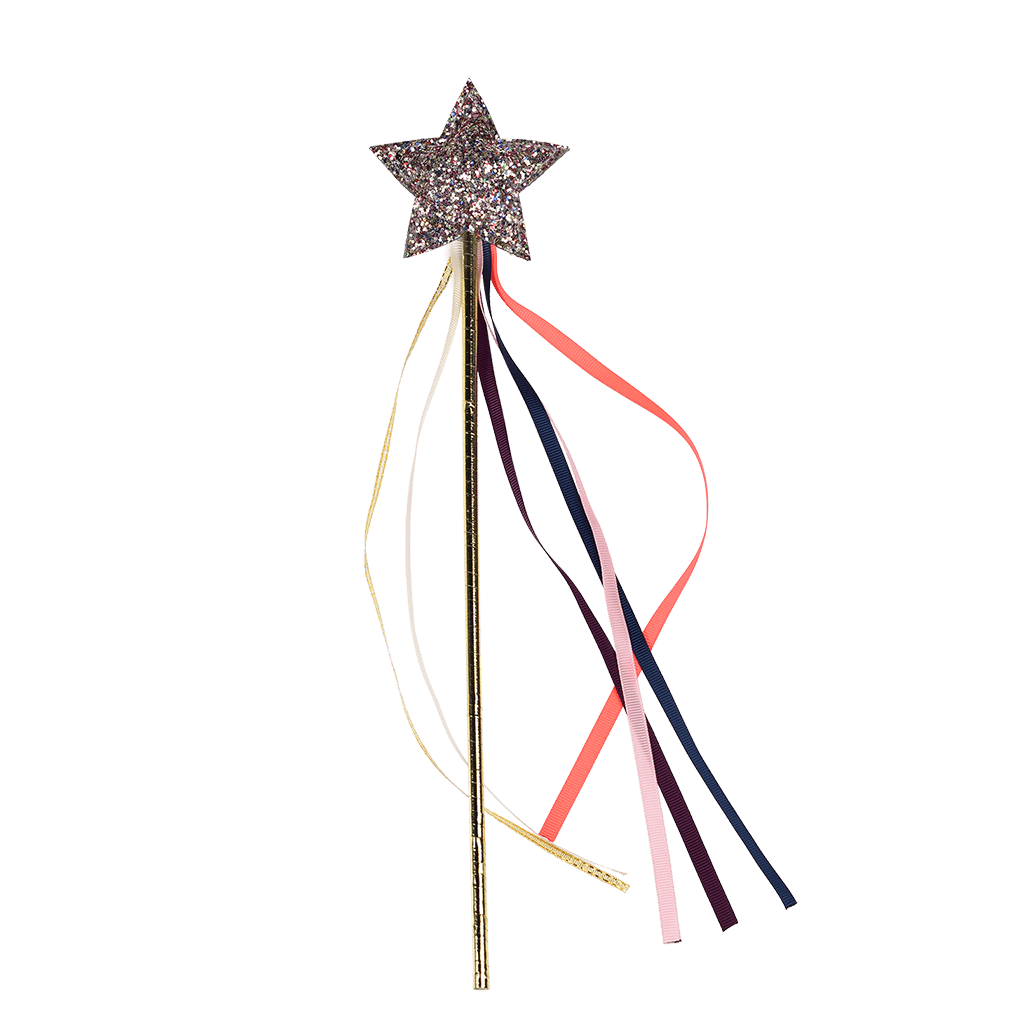 Cette magnifique baguette magique étoile brillante de mille feux sera parfaite pour faire vivre des histoires de rêves à vos kids. De jolis rubans colorés viennent embellir cette jolie baguette de fée.