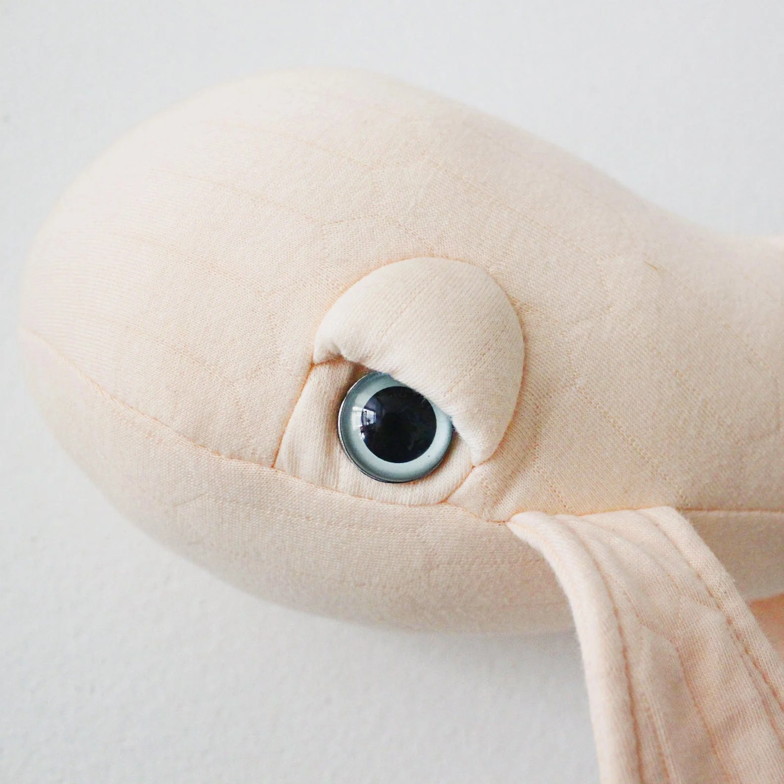 Futur explorateur marin, votre enfant a des envies d’aventures au cœur des flots des océans ? Permettez-lui de partir à la découverte des profondeurs marines en compagnie de la peluche baleine **BigStuffed**, un mammifère mystérieux emplit de rêve et de douceur. Le doudou baleine a pris vie entre les mains de couturières passionnées au sein de nos ateliers de couture européens. Modelées dans des tissus de qualité aux motifs inimitables, les peluches baleines sont aussi uniques que durables, pour une relation d’amour infinie !