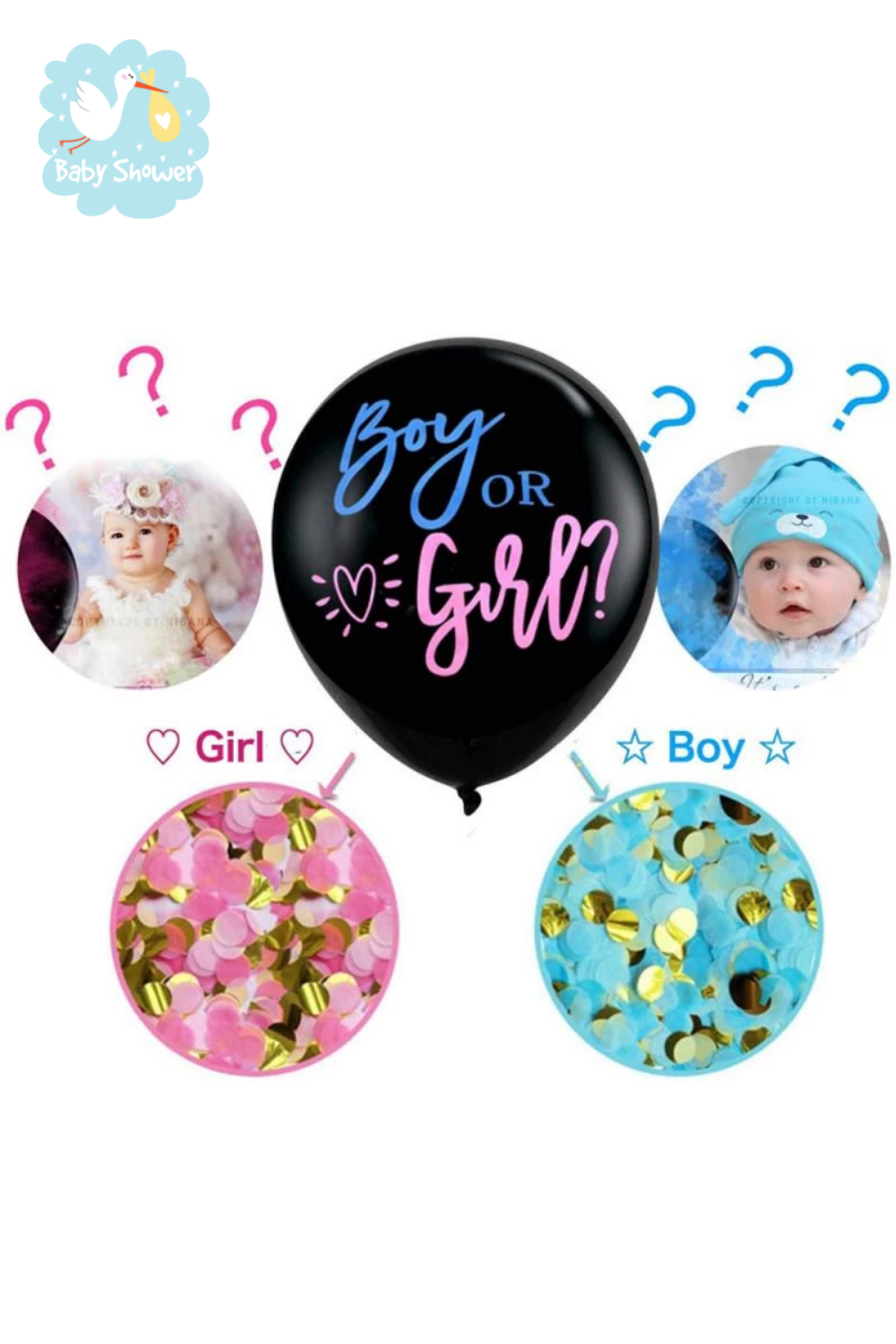 Garçon ou fille? Les fêtes baby shower pour révéler le sexe du bébé sont de plus en plus en vogue! Organisez la votre avec ce ballon géant “boy or girl””. Surprise, lorsqu’il eclate des confettis de couleur bleu ou rose apparaissent.
