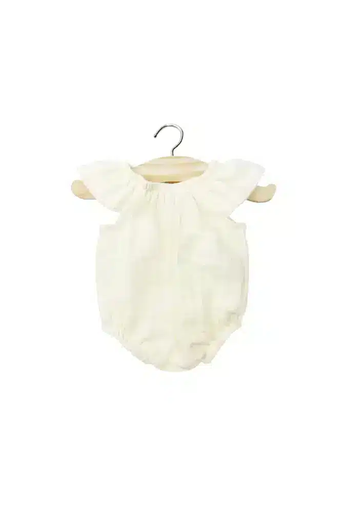 La petite barboteuse adaptée pour les poupées Gordis de la marque Minikane. Cette jolie barboteuse écru sublimera la poupée de votre enfant !