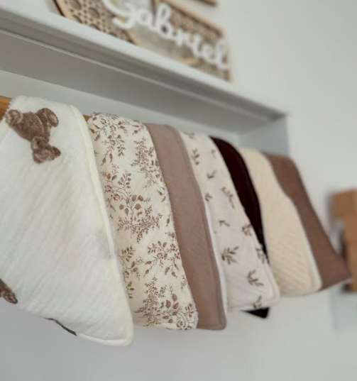 Le bavoir est en gaz de coton et éponge micro fibre, ultra absorbante.