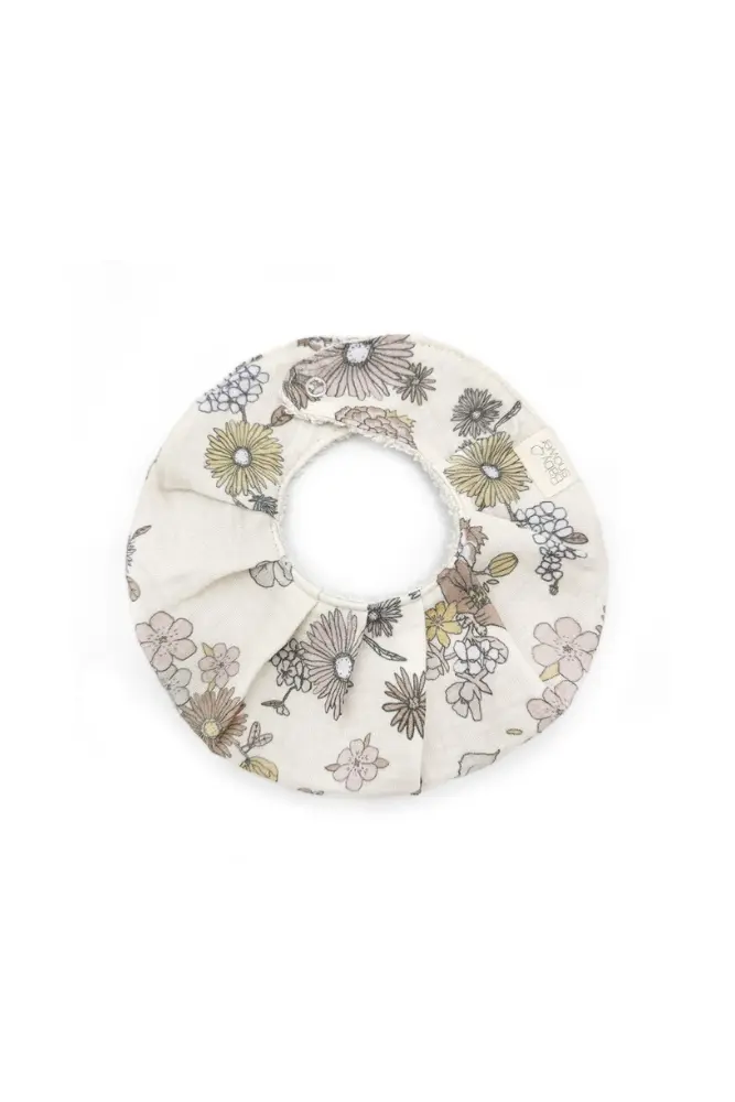 Un joli bavoir en forme de col à volant qui associe une face en gaze de coton Bio et une autre en éponge. Lors des poussées dentaires, le cou de votre enfant restera sec tout en apportant une touche de style à sa tenue.