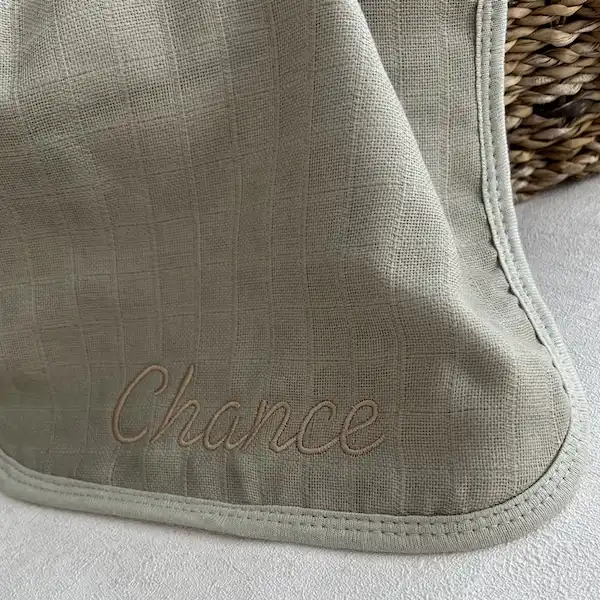 Ce qui rend ce bavoir vraiment spécial, c’est la possibilité de le personnaliser avec le prénom de l’enfant. La broderie, réalisée avec soin, ajoute une dimension unique et affectueuse à cet accessoire du quotidien. Que ce soit pour votre propre enfant ou pour offrir un cadeau à des proches, un bavoir personnalisé est un souvenir précieux qui pourra être conservé longtemps.
