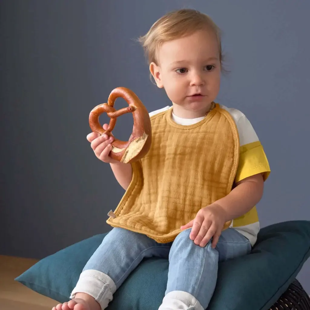 Une qualité durable et facile d’entretien La mousseline, légère et aérée, est particulièrement adaptée à la peau délicate des tout-petits. Le verso, réalisé en éponge absorbante, offre une protection efficace contre les petites bavures et éclaboussures. Avec ce bavoir, les vêtements de bébé restent propres plus longtemps, ce qui facilite la vie des parents. Son système d’attaches à lacer garantit une adaptabilité parfaite à toutes les morphologies. Que votre bébé soit tout petit ou déjà en pleine croissance, ce bavoir l’accompagne en toute sécurité, sans risque de compression ou d’inconfort. Parce qu’un bavoir doit être à la hauteur des petites…