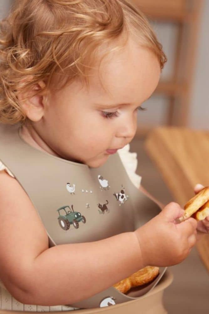 Découvrez ce bavoir en silicone idéal pour protéger bébé lors des repas. Avec sa grande poche, le bavoir collecte les aliments et les liquides. Le silicone doux rend le bavoir confortable à porter et facile à nettoyer. De gros boutons dans le cou vous aident à ajuster le bavoir à la taille de votre enfant.