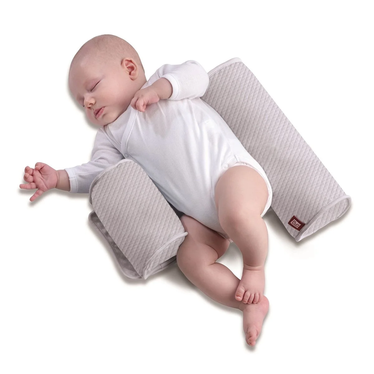 - Deux coussins-cale reliés par une bande de tissu pour le bébé.