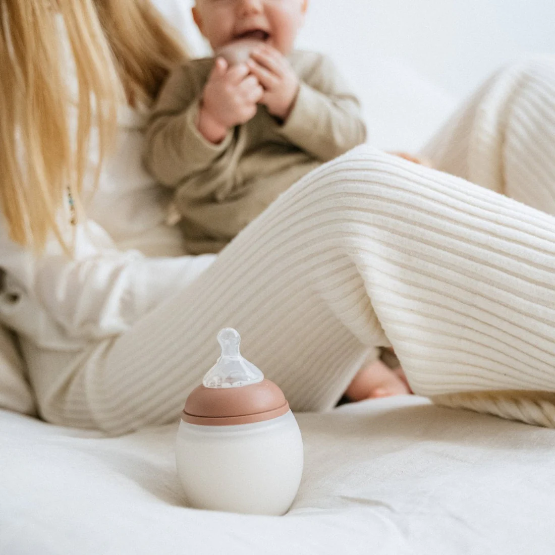 Biberon de naissance idéal pour les nouveau-nés. La texture souple du biberon en silicone médical ainsi que son système de valve anti-colique sur la tétine, évitent au bébé d’avaler de l’air, et facilite ainsi sa digestion. Le biberon à une composition 100% saine pour les bébés, sans BPA, BPS, phtalate, ni aucun perturbateurs endocriniens. Léger, incassable et évolutif grâce à son opercule qui permet de le transformer en petit contenant hermétique pour conserver le lait maternel ou la compote/purée. Le biberon peut être utilisé dès la naissance et se combine parfaitement avec l’allaitement lorsqu’il est doté d’une tétine débit Très…