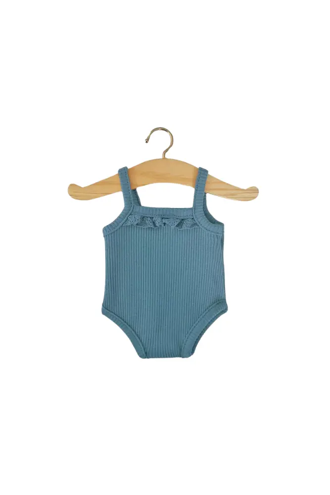 Le petit body Paon avec sa jolie dentelle pour habiller les poupées Minikane. Convient à toutes les poupées de la gamme Minikane.