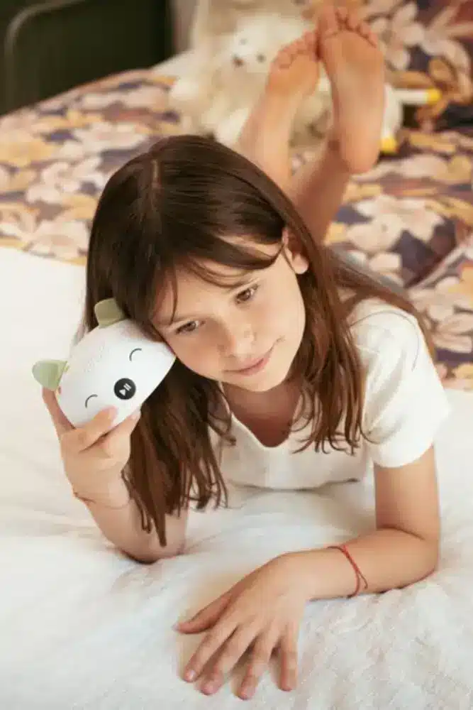 Des contenus audio adaptés aux enfants, sans ondes et sans écran. La boîte à histoires Morphée propose des histoires, des séances de sophrologie pour apprivoiser les émotions grâce aux contenus audio du raconteur Elio, développés en collaboration avec Hachette.