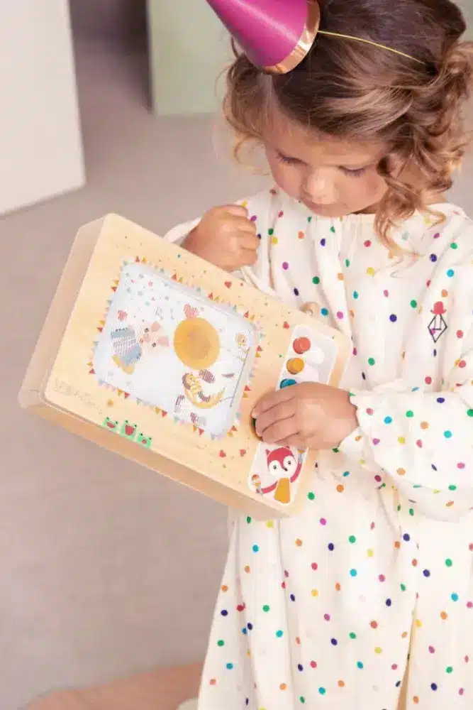 Cette boîte à musique animée en bois est idéale pour stimuler la vue et favoriser l’éveil musical des tout-petits dès l’âge de 10 mois. Un petit tour de bouton et la joyeuse troupe entonne un air joyeux sur une mélodie douce et rythmée. Les animaux défilent en dansant comme lors d’une vraie parade, captivant l’attention des enfants. En tournant le bouton, votre enfant découvre les plaisirs de la musique et développe sa motricité fine. L’atout de cette boîte à musique, c’est sa poignée en tissu, qui permet de facilement la transporter au gré de ses envies.