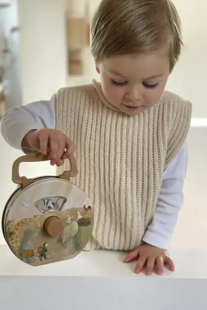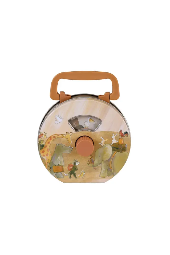 Découvrez cette boite à musique de la marque Edmont Toys. Tourner le bouton et la mélodie retentie avec des jolis dessins qui défilent. Votre enfant va adorer écouter et observer. Pas besoin de piles. Retrouvez le modèle Animaux et Musiciens.