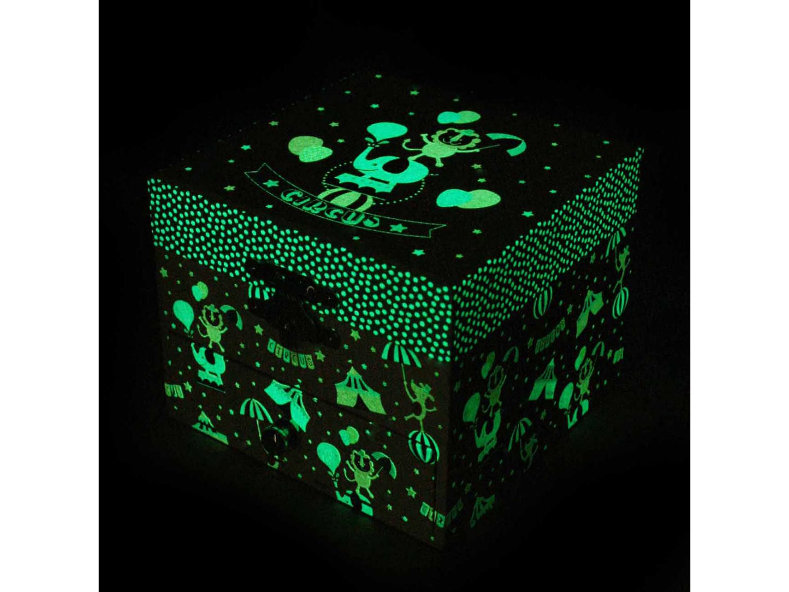 TROUSSELIER – Cirque – Boîte à Trésors & Bijoux Musicale – Idéal Cadeau Enfant – Phosphorescent – Brille dans la nuit – Musique Let It Be des Beatles – Colori Ivoire.