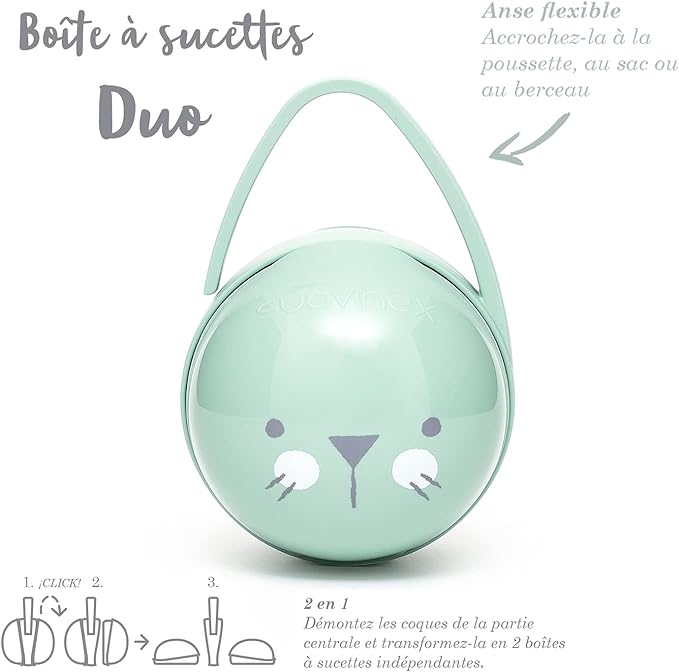 La boîte a sucettes permet de ranger les sucettes et de les avoir à portée de main jusqu’à leur prochaine utilisation.
