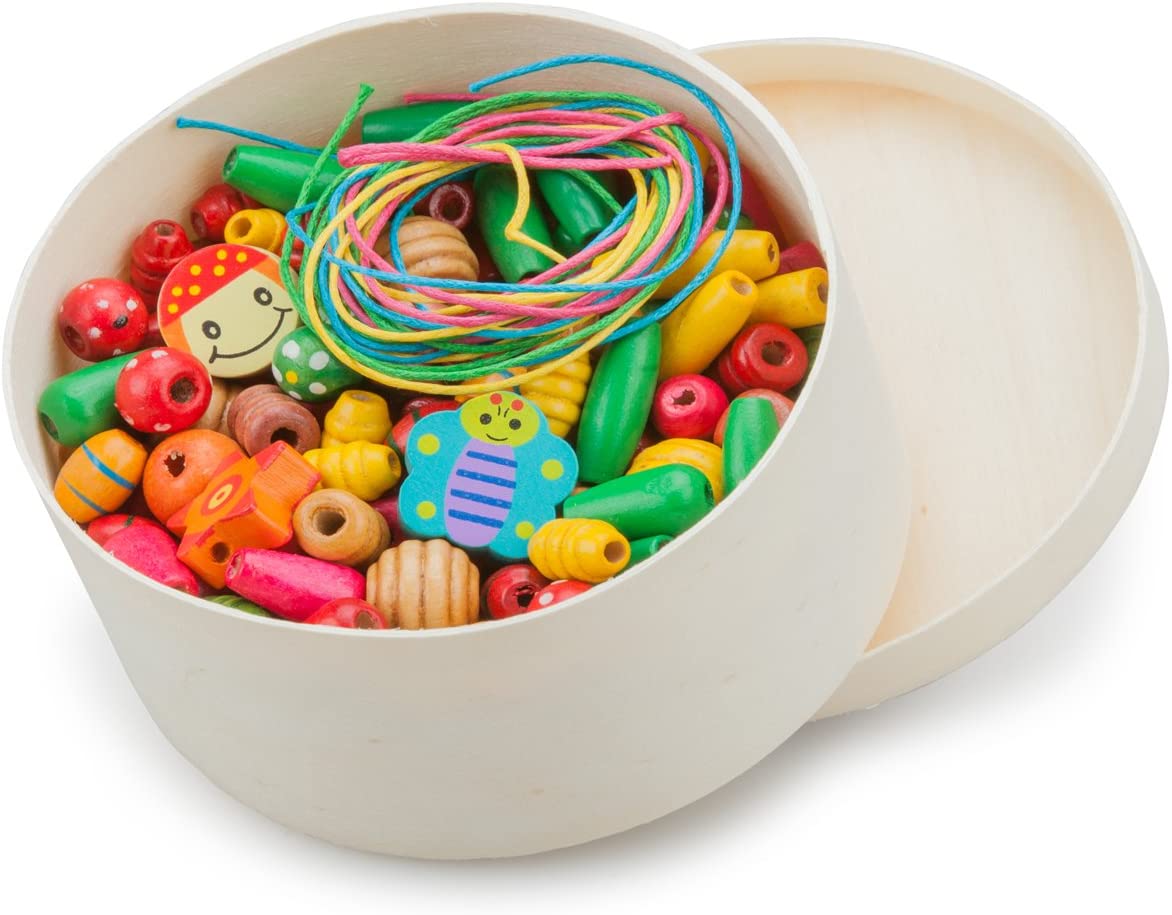 Boîte de perles en bois avec liens (médium) – 10570