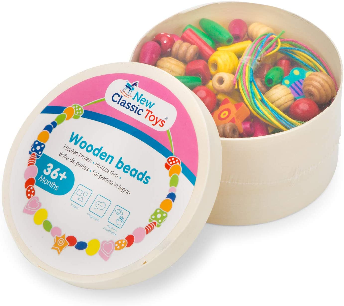 Avec cette belle boîte de perles en bois, l’enfant pourra fabriquer des colliers et des bracelets lui-même. Comprend plus de 230 perles et 4 lacets. Cet article fait partie de la New Classic Toys « Educational » collection. Construire, empiler, trier et compter.
