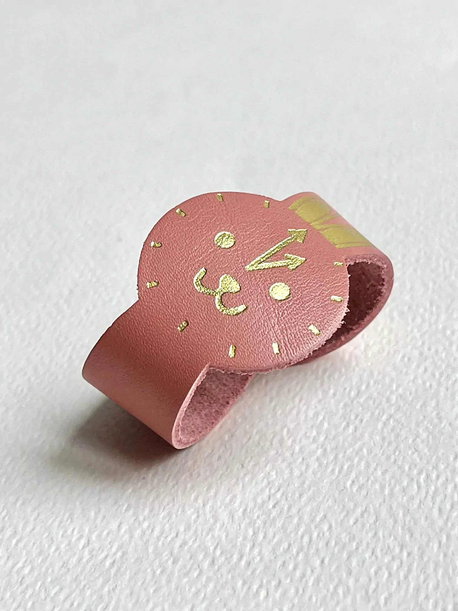 Conçu en cuir pleine fleur (label REACH), il est à la fois souple, résistant et élégant. Le design « cadran » et les oreilles dorées gravées à chaud apportent une touche chic et ludique qui plaira à coup sûr.