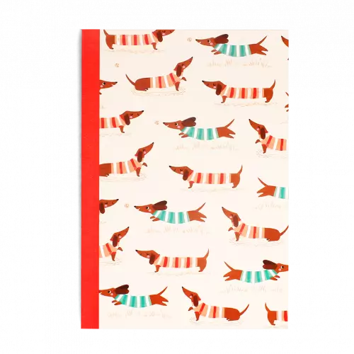 Ce joli carnet A5 ligné de la marque Rex London, se pare d’un motif chiens saucisses. Il est imprimé sur les couvertures recto et verso.