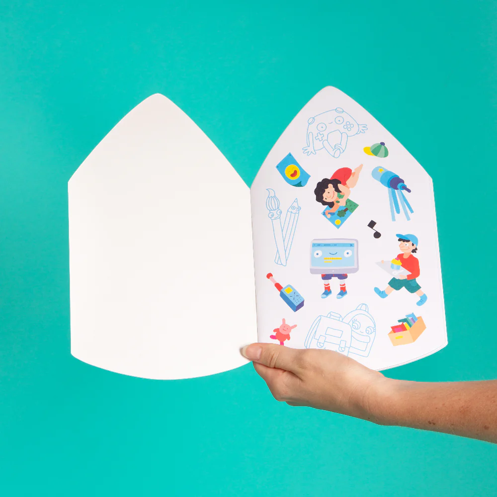 Du minuscule au XXL , tout prend forme humaine dans le monde imaginaire d’Omy! Ce cahier est composé de 44 pages d’illustrations fun, d’effets hologrammes, de couleurs fluo, de stickers et de feuilles vierges pour laissez libre cours à sa créativité. Le cadeau idéal pour un goûter d’anniversaire, à emporter en vacances ou pour un après-midi d’activité à la maison.
