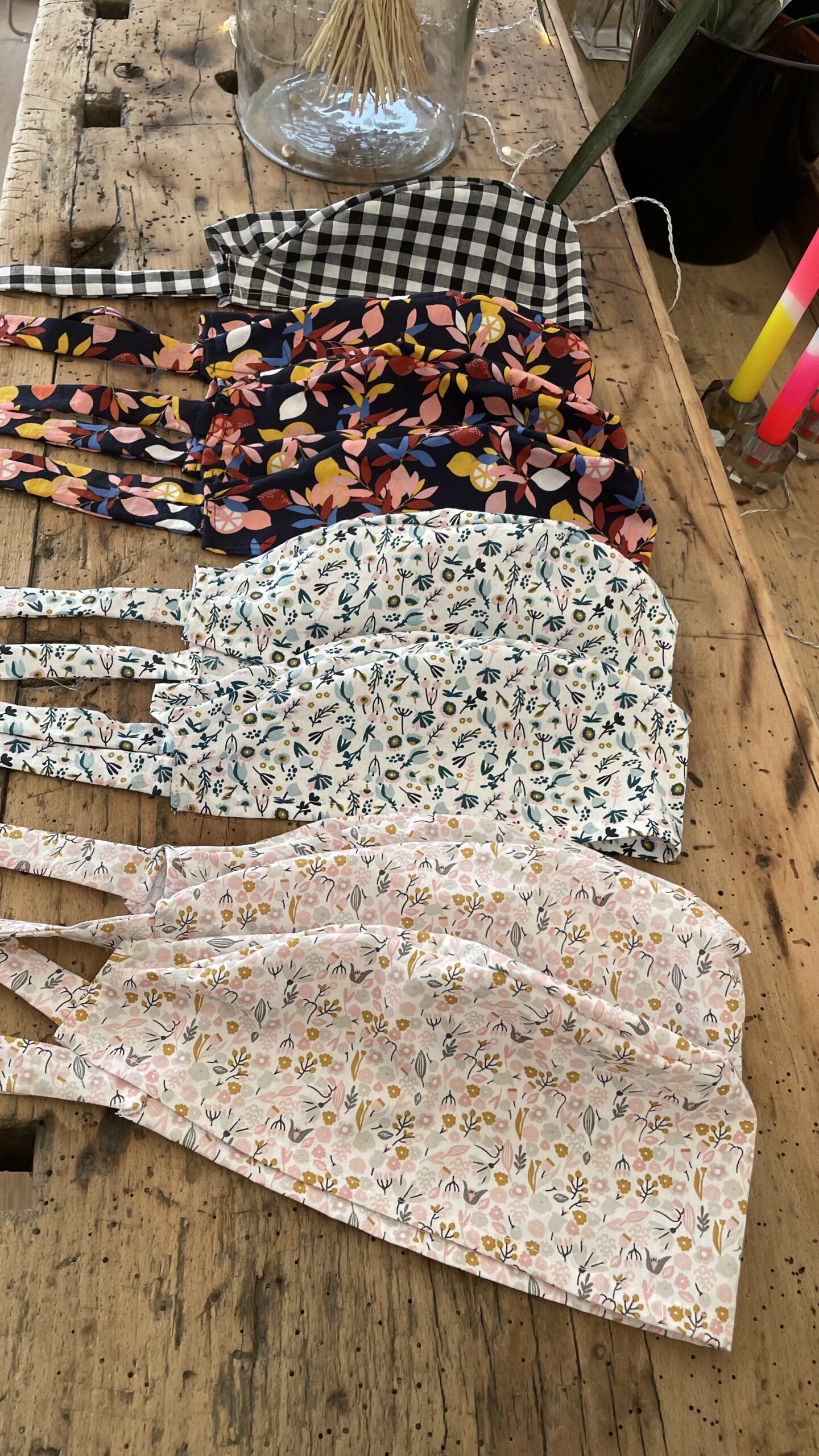 | Imprimés | Coeurs, Fleuri rose, Koala grimpant, Marin, savane bleue, Vichy noir gros carreaux, Vichy noir petits carreaux |