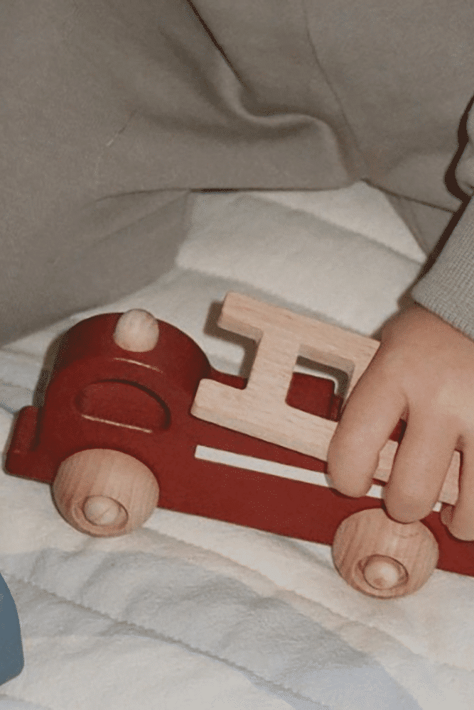 Joli camion de pompier en bois de hêtre disposant d’une échelle sur le dessus qui est amovible ainsi qu’une d’une fermeture magnétique !