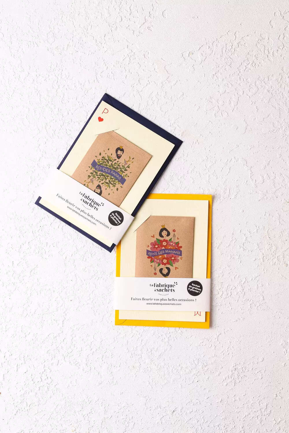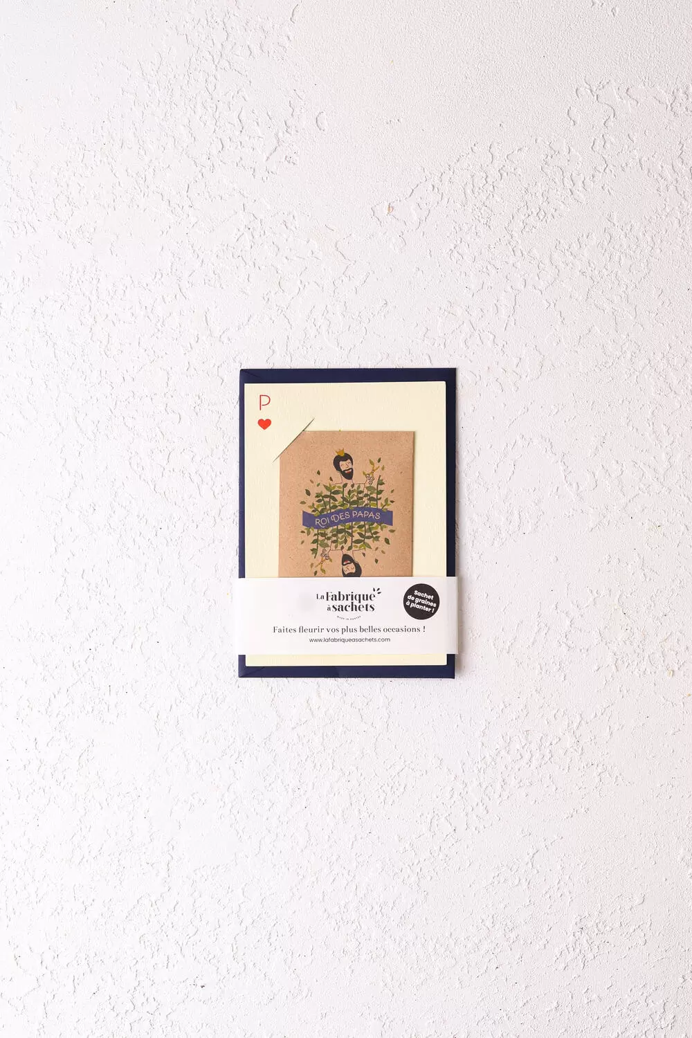 Ce kit comprend un sachet de graines de basilic genovese françaises, une carte imprimée au format A6 (105 x 148 mm) et une enveloppe marine recyclable (114×162 mm). Cette année, changez du traditionnel cadeau avec notre carte à planter, une façon unique de célébrer le roi de votre vie.