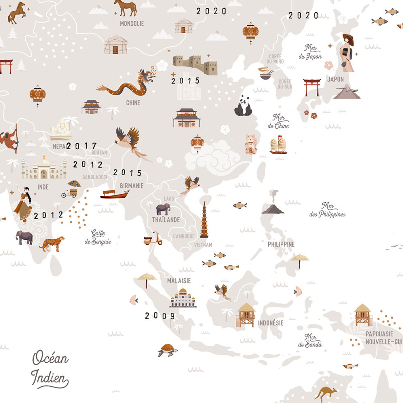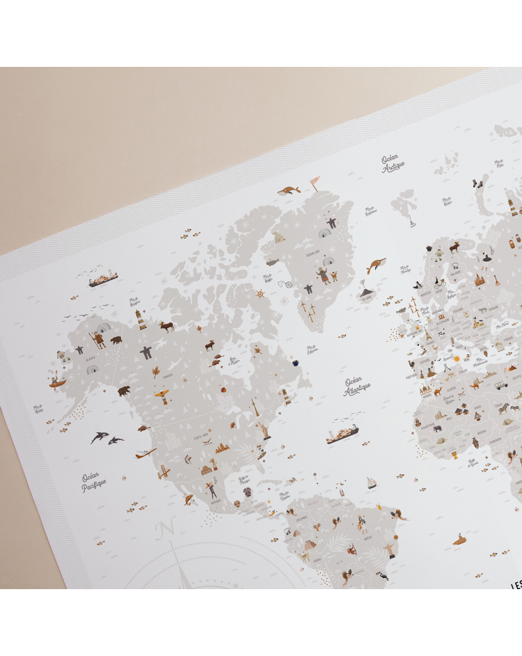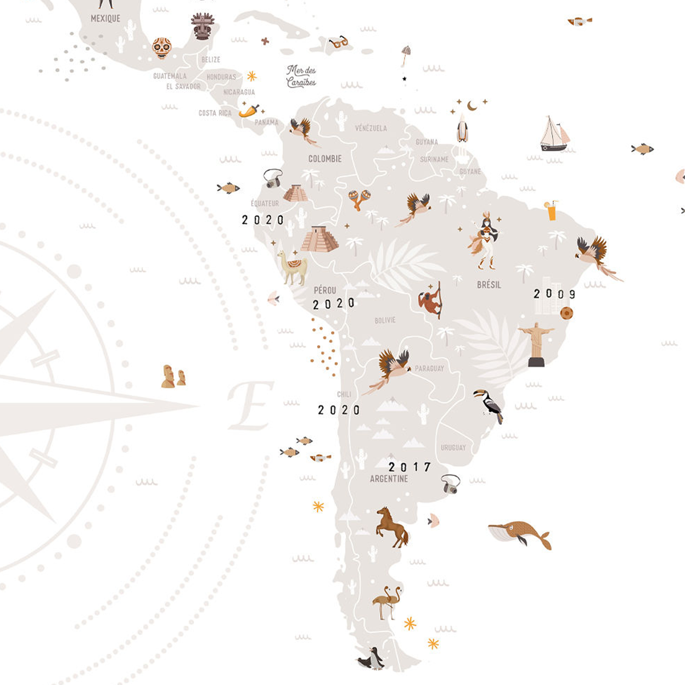 Pour les minis globe-trotteurs ou les grands voyageurs, une carte du monde à tamponner pour dater tous les voyages passés et ceux à venir !
