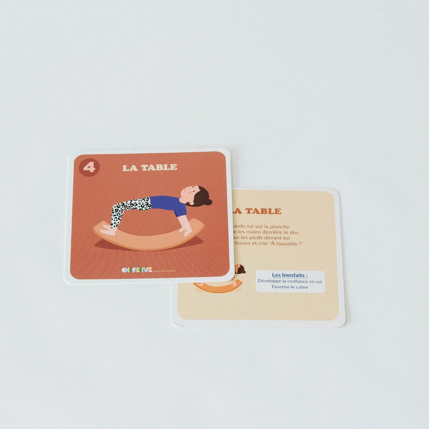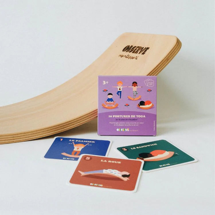 Proposez à votre enfant une activité ludique et tout en mouvement grâce à nos 10 cartes de Yoga (à réaliser sur la planche d’équilibre) ! Comment s’en servir ? Routine du matin pour se recentrer ? S’éveiller en douceur ? Routine du soir pour évacuer les mille infos de la journée d’école ? Pas de routine, juste du fun & du sport ? Tirez une carte au sort et essayez de reproduire la posture (vous, votre enfant ou son doudou…) ! Le Yoga sur Planche est un super moyen d’apprendre à se débrouiller tout seul ! Réussir les postures en…