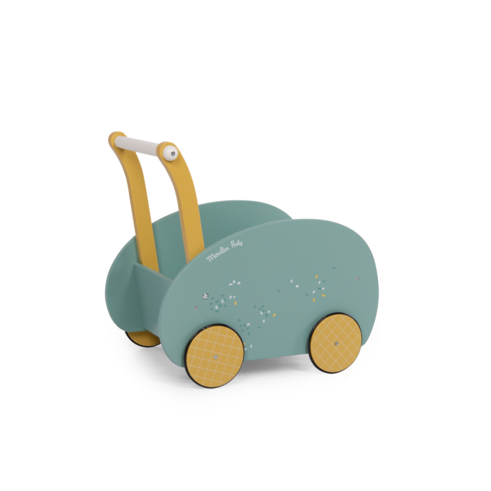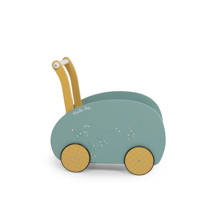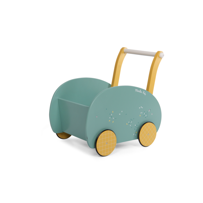 Pour accompagner l’enfant dans l’apprentissage de la marche : chariot en bois peint, aux formes rondes et aux couleurs douces de la collection Trois Petits lapins. Pratique, sa caisse à l’avant permet de transporter et ranger tous ses jouets. La visserie ainsi que la roue de ce chariot de marche, sont disponibles en pièces détachées.