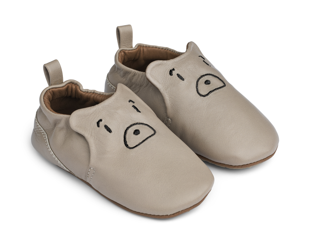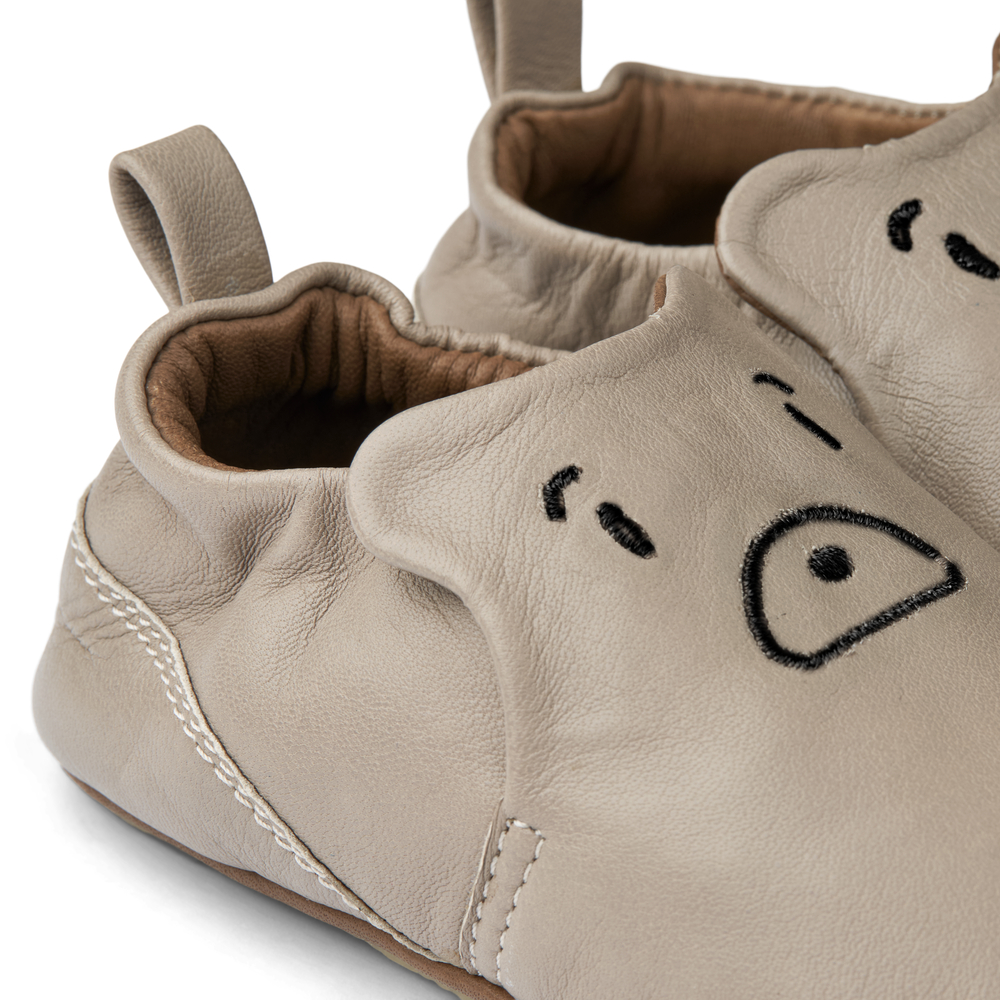 Les pantoufles en cuir souple Eliot sont spécialement conçues pour le confort des enfants à l’intérieur. L’empeigne et la doublure en cuir de chèvre doux assurent un confort tout en douceur, tandis que la semelle intérieure offre un soutien pour la voûte plantaire et un rembourrage pour plus de confort. Avec des détails animaliers ludiques, dont d’adorables oreilles et une broderie pour la tête d’ours, ces pantoufles sont à la fois mignonnes et fonctionnelles. Le panneau élastique dissimulé permet d’enfiler/de retirer les pantoufles facilement.
