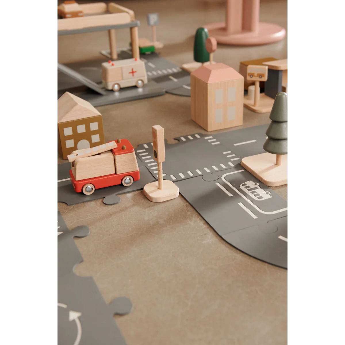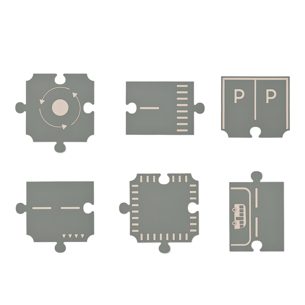 Aidez votre enfant à construire sa propre infrastructure avec les routes polyvalentes du village en PVC, qui font partie de la série Liewood Village.