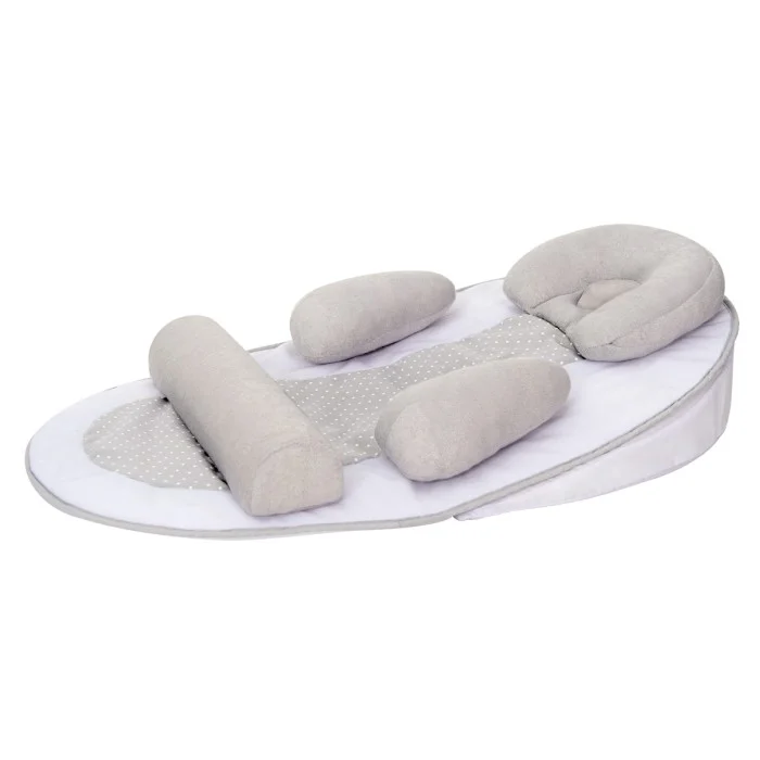 Le réducteur de lit crée un espace de couchage sécurisé et rassurant pour votre enfant, simulant la sensation d’être dans le ventre de sa mère. Le plan incliné à 10 degrés est utile pour les bébés souffrant d’encombrement respiratoire, tandis que le cale-tête aide à maintenir la forme ronde de la tête de votre bébé, prévenant la plagiocéphalie.