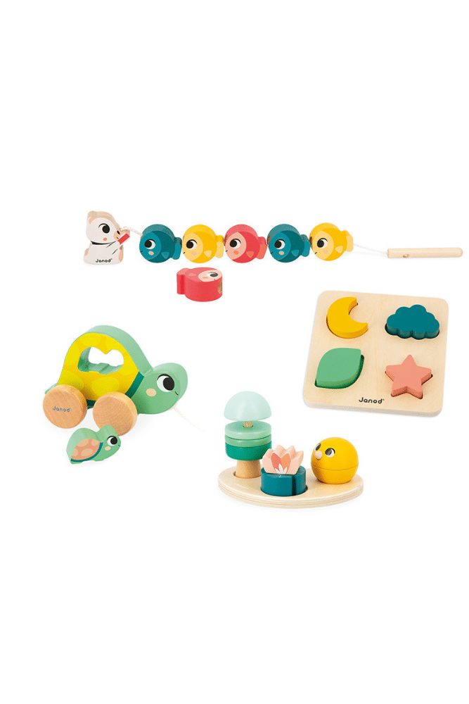 Découvrez la box d’éveil spécialement conçu pour les enfants dès 18 mois. Elle contient 4 jeux stimulants pour éveiller les sens de bébé et stimuler le développement. Chaque jouet a été pensé et réalisé en collaboration avec une psychomotricienne afin de favoriser la découverte du corps et de la sensorialité, fondamentaux à cet âge-là . Les jeux sont la plupart conçus en bois. Avec un design ludique, ils encouragent ainsi la vue, l’ouïe et le toucher : – Un stand d’éveil musical en bois avec 3 jouets sonores différents. – Un puzzle avec 4 pièces de différentes formes et couleurs. –…