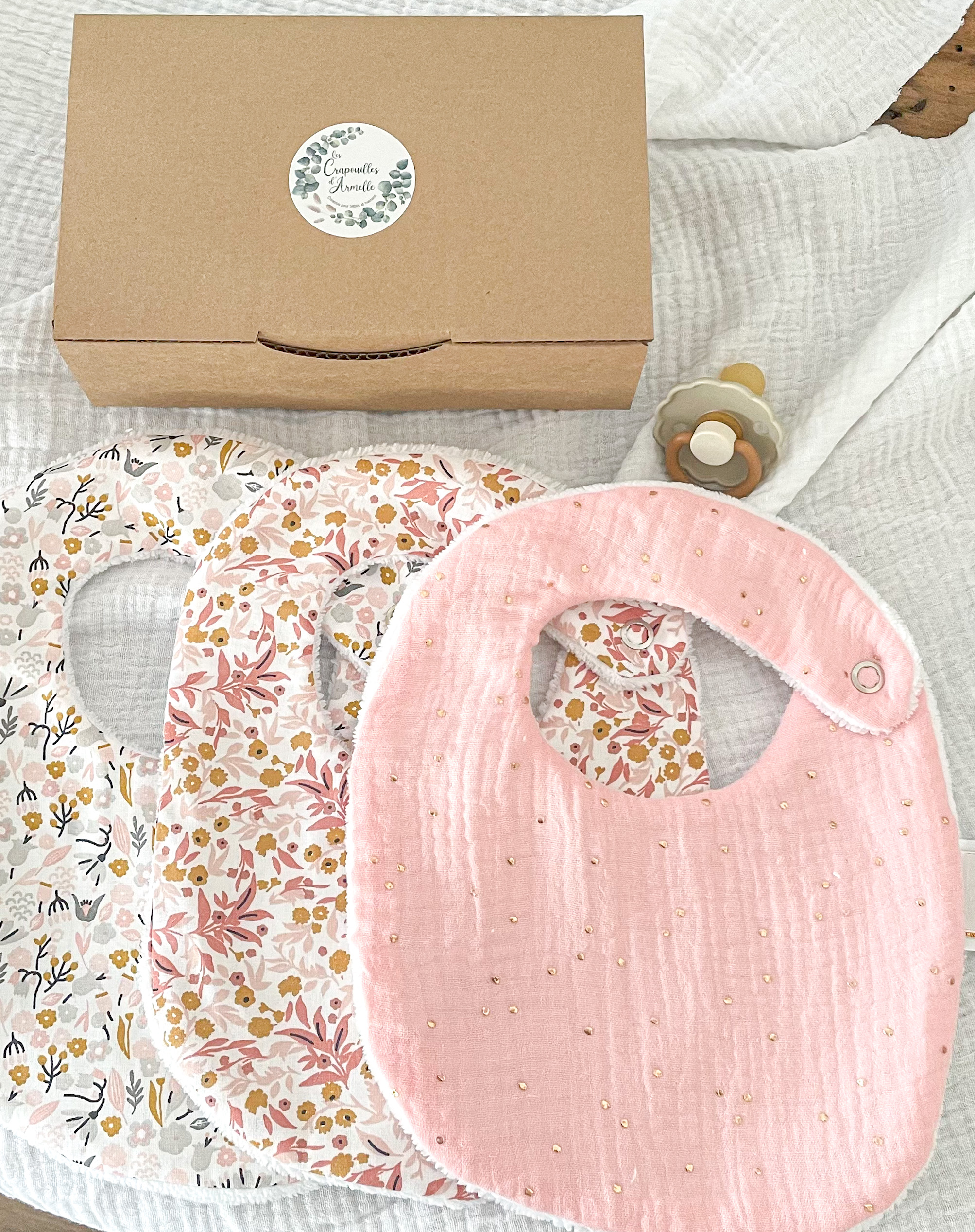 Coffret naissance , trio de bavoirs