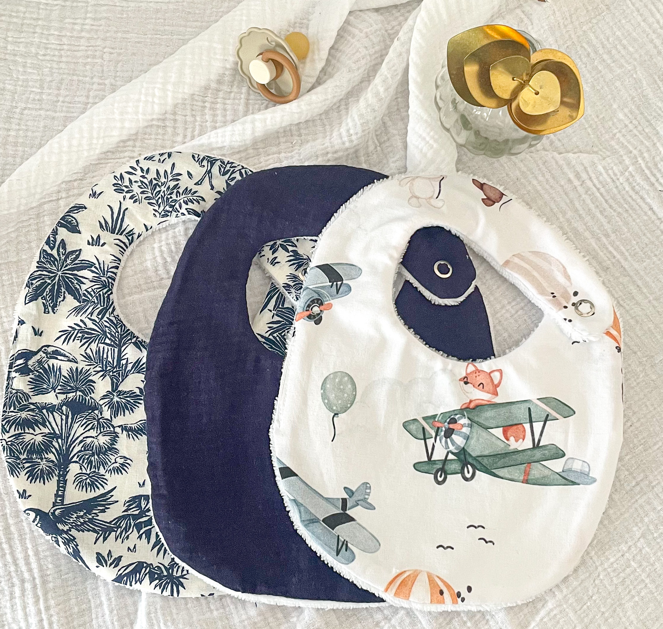 Coffret naissance , trio de bavoirs.
