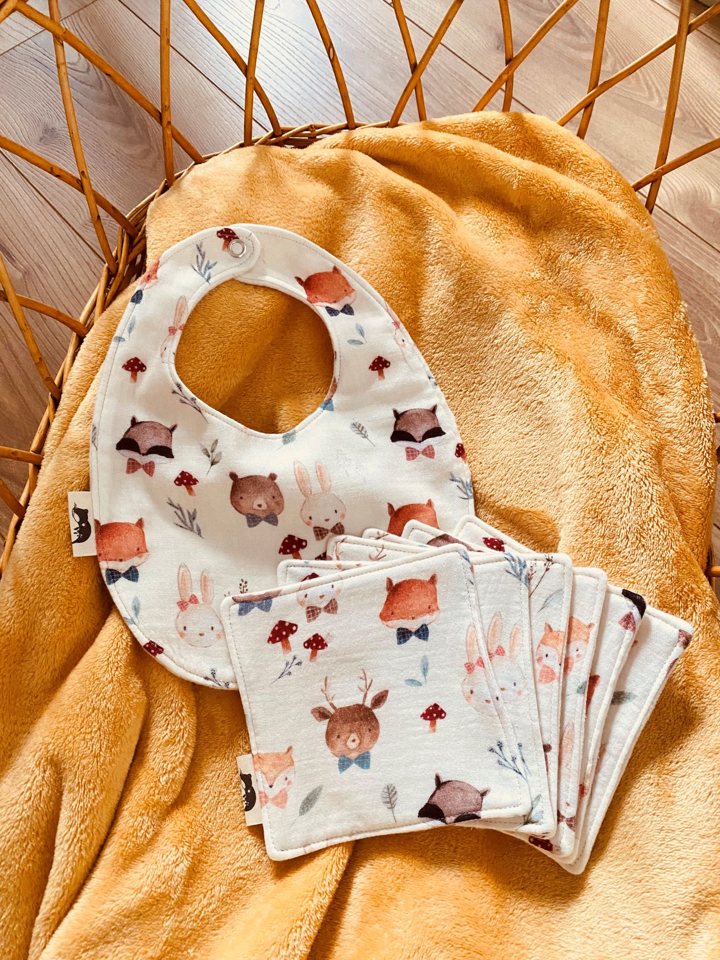 Je les couds moi-même à la main, dans une double gaze de coton certifiée Oeko-Tex et un molleton 100% coton bio certifié GOTS, idéale pour la peau fragile des tout-petits. Une attention particulière est portée à chaque détail pour créer un coffret utile, doux et respectueux de l’environnement.