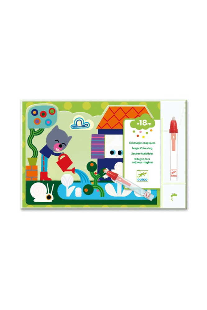 Le coloriage magique intitulé Caché dans le jardin propose 4 planches à colorier pour les enfants dès 18 mois. Rien de plus simple : Remplissez le stylo avec de l’eau et votre enfant pourra ainsi colorier les planches pour faire apparaître des dessins surprises. Quand la planche sèche, les dessins disparaissent à nouveau et il pourra recréer la magie à l’infini !