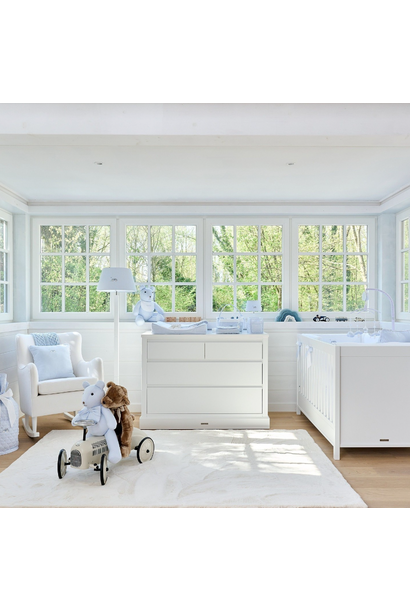Une rallonge se place à l’arrière de la commode afin de vous permettre de langer bébé face à vous. La profondeur du plateau passe alors de 56 à 71cm.