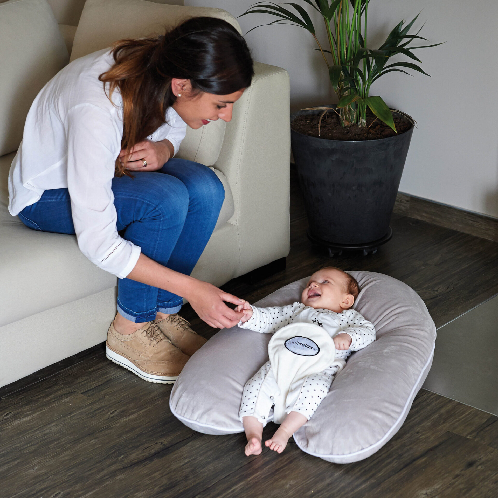 Le coussin de maternitĂ© Multirelax c’est aussi un petit nid douillet sĂ©curisant pour bĂ©bĂ©. Il apporte confort absolu dès la naissance jusqu’Ă 6 mois (3-9kg).