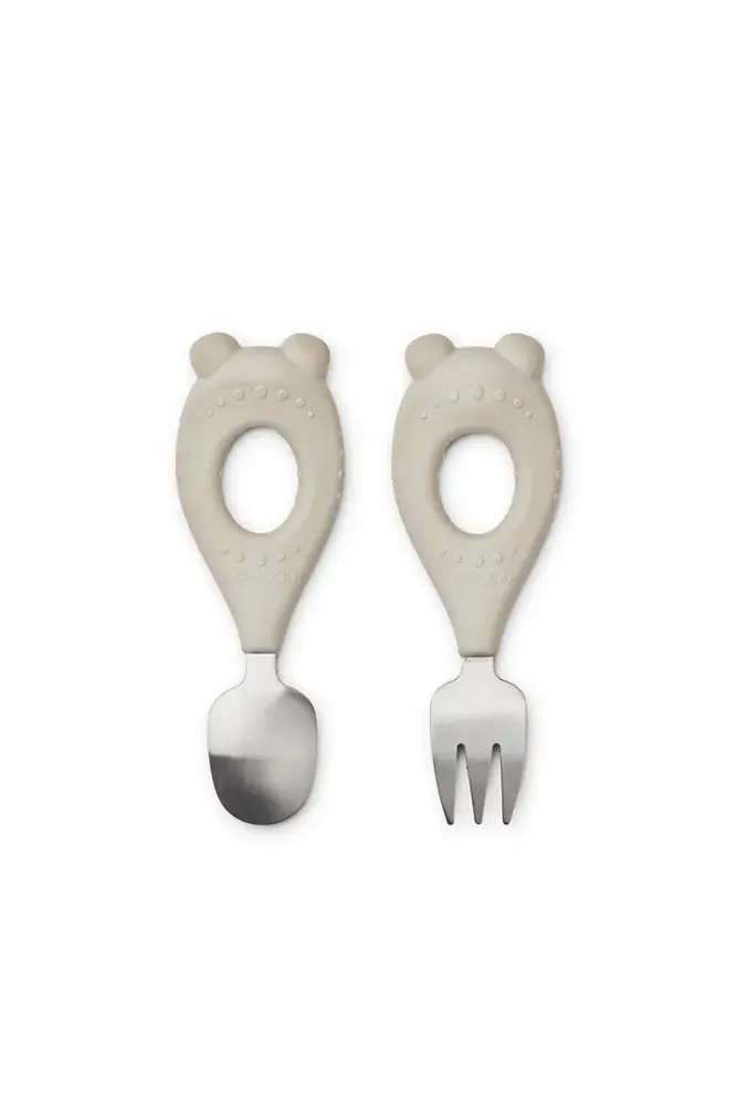 L’Ensemble de couverts pour Bebé est parfait pour aider votre bébé à maîtriser son alimentation. Les petites marques sur la cuillère et la fourchette donnent à votre tout-petit une idée de la distance à laquelle ils pénètrent dans la bouche, ce qui permet à votre bébé de manger plus facilement.
