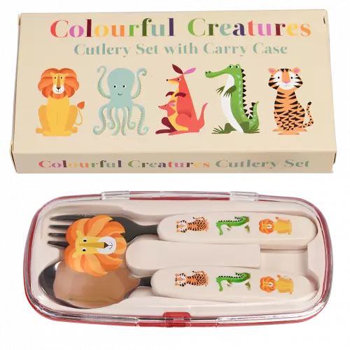Set de couverts pour vos kids de la marque Rex London, avec une cuillère et une fourchette Colourful Creatures. Le tout vendu dans une petite boîte, parfaite pour offrir.